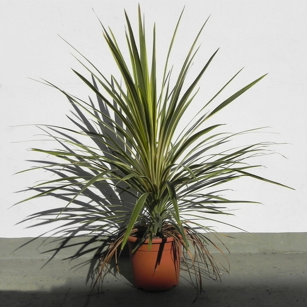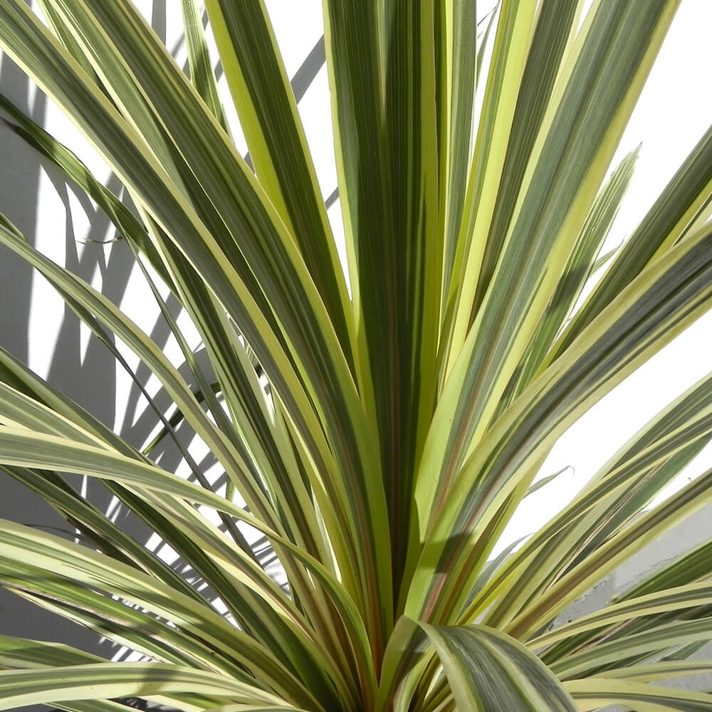 Die grün-gelbe Keulenlilie (botanisch: Cordyline spp.) ist eine elegante, exotisch anmutende Kübelpflanze, die dem Stil von Yucca oder Dracaena ähnelt, jedoch zur Familie der Agavengewächse zählt. Mit ihrem schlanken, verholzten Stamm und der endständigen Rosette aus schwertförmigen Blättern setzt sie optische Akzente in hellen Wohnräumen, auf dem Balkon oder der Terrasse. Die Blätter zeigen je nach Sorte Farbvarianten von intensivem Grün über dunkles Purpur bis hin zu Rot oder mehrfarbig panaschiert und bringen damit Farbe in jedes Ambiente. Ab Juli bis August entwickelt sich bei älteren Exemplaren ein eleganter Blütenstand aus cremeweißen bis violetten Rispen – auf Wunsch gefolgt von attraktiver Verzweigung. Kurzzeitig sind einstellige Minusgrade tolerierbar, doch idealerweise überwintert die Keulenlilie im hellen Innenraum bei Temperaturen zwischen 5 °C und 10 °C.
