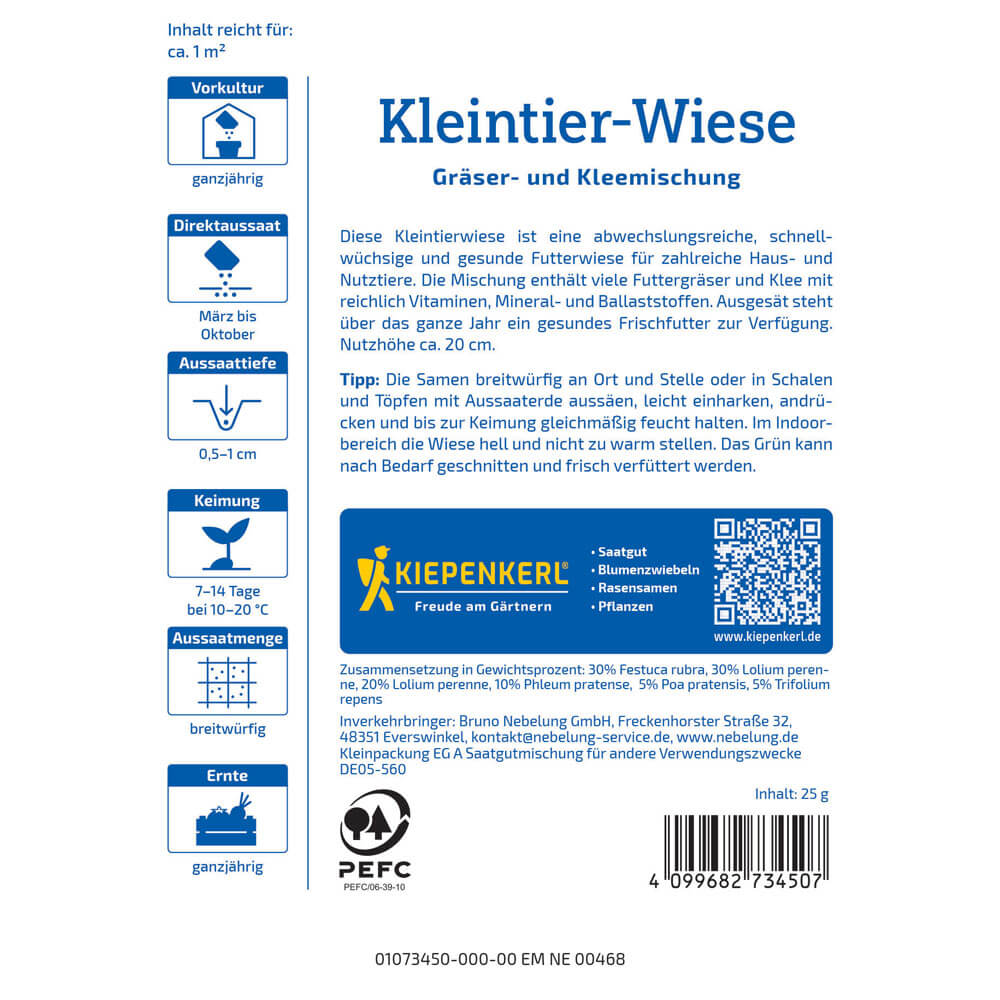 • Lieferumfang je Verpackungseinheit (VE): 1 Packung reicht für ca. 1 m2 Kleintierwiese